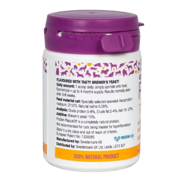 PlaqueOff is a patented natural feed supplement containing only especially selected seaweed. When used daily, it may significantly reduce bad breath, plaque and tartar.